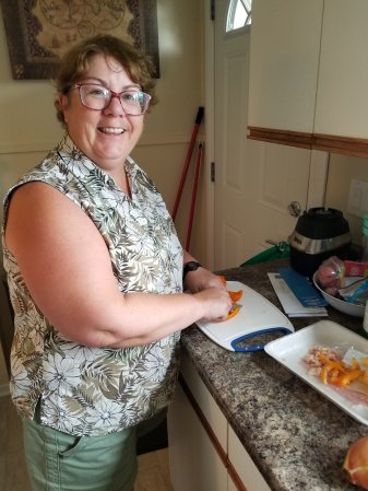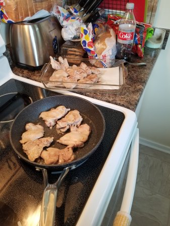I am cooking chicken tonight. It is the recipe Suzie gave us. Michele is helping.