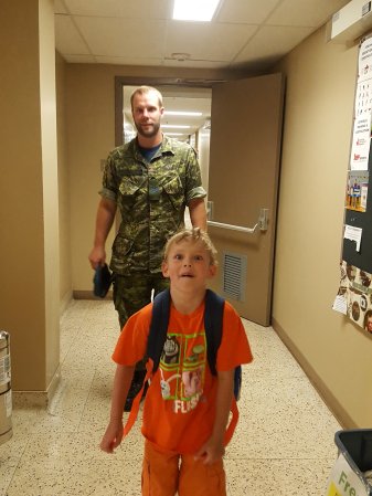 Gabriel is waiting for his dad and then they will go and pick up Kristin at work.