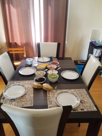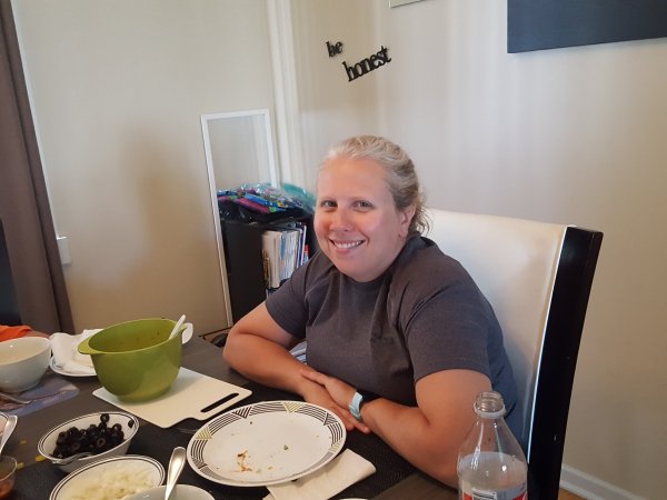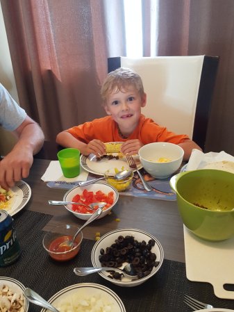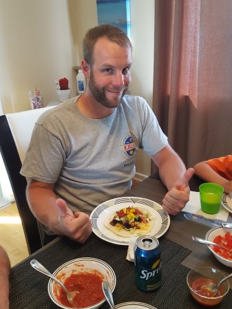 Gabriel ate four big tacos. We did measure him after dinner and he has grown 1/2 inch since he got here.