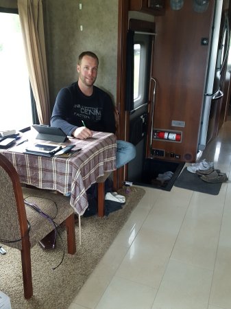We are parked in the back with all the services, like water, electricity and sewer hook ups, wow!