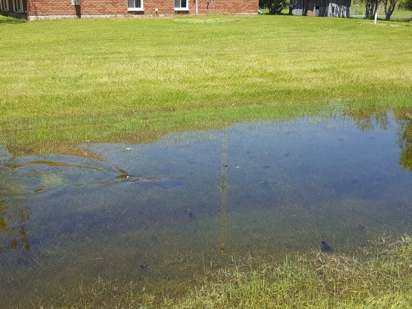 With the first step completed, now is the time the large gravel comes in. Of course, the rain started at the same time.
