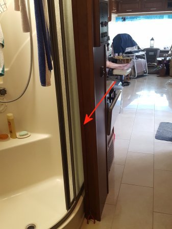 There is always something to fix in an RV. Like this trim on a wall next to the shower.