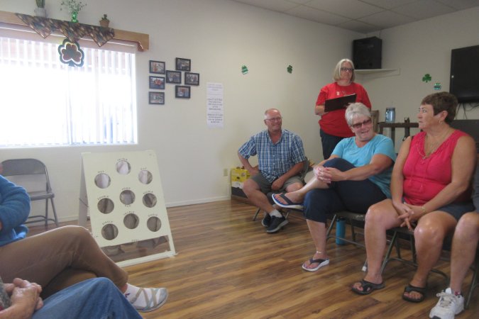 In the afternoon, we went to the club house to try a new game. Beanbag baseball.