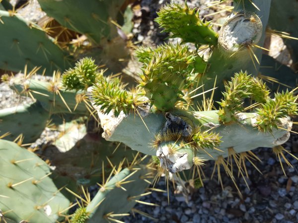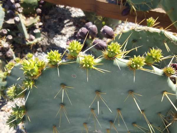 Michele and I went for a bike ride this morning. We saw this cactus and with the rain we just had, it is starting to bloom.