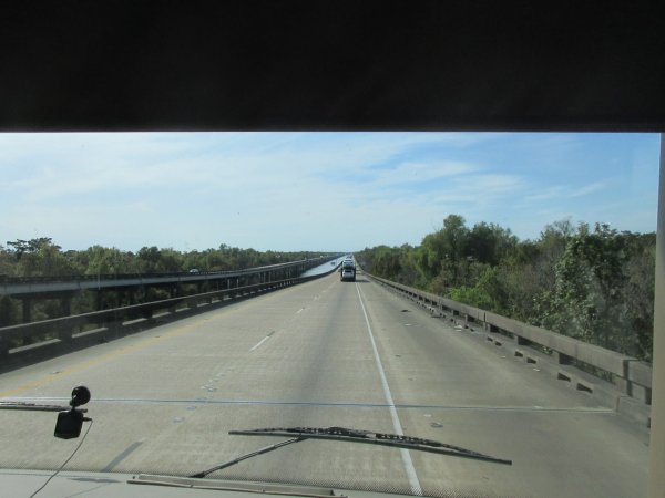 We cross the Atchafalaya Basin. The bridge is 29 kilometers