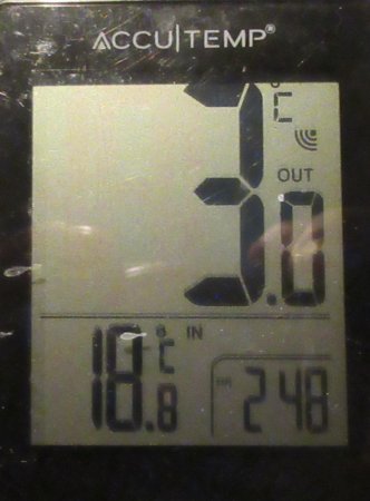 C. At 11 pm, it was only 4° C. The rain started and so did the wind.