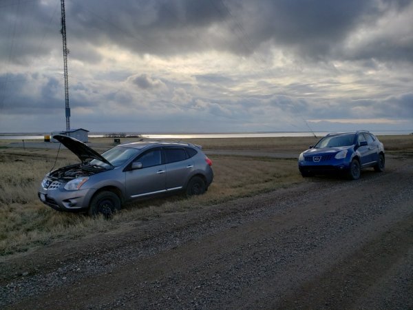 He plugged the hole with marine epoxy. It was -20° C. He got cold while waiting for his girlfriend to come to the rescue.