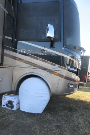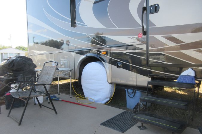Monday I had installed the tire covers on the tires since we are here for the next 4 months.