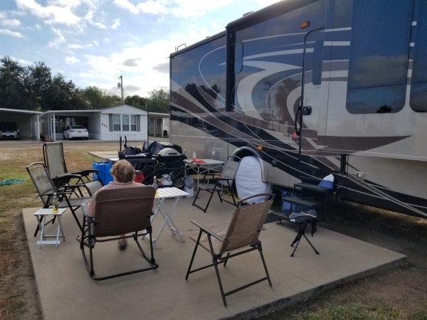 Another view of the patio. I will put down one of two more carpets between the MH and the green carpet.