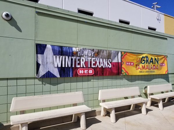 The local H-E-B grocery store has this sign for us Winter Texans. It is the same as Snowbirds in Florida.