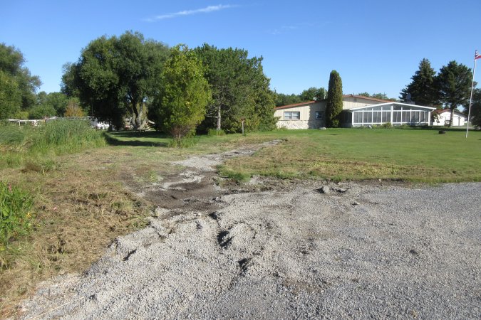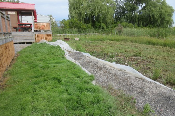 The lighter gravel you see is what Michele brought from the front of the campground.