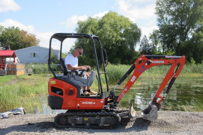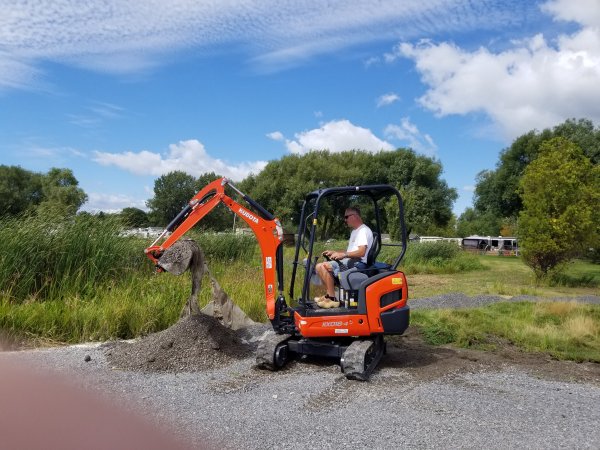 Jan's new excavator was delivered this morning. The old one was getting tired.