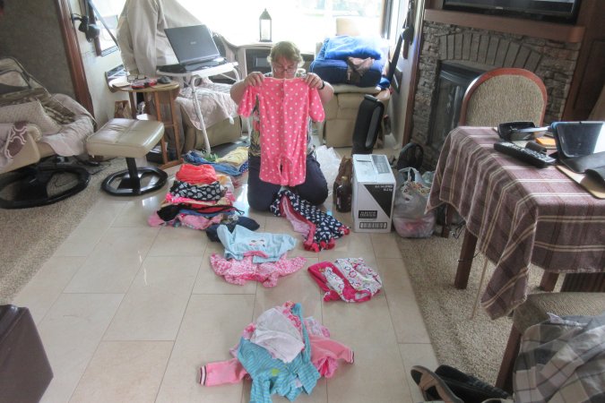 Michele got up early (for her) this morning. She wants to go to a yard sale with lots of baby stuff.
