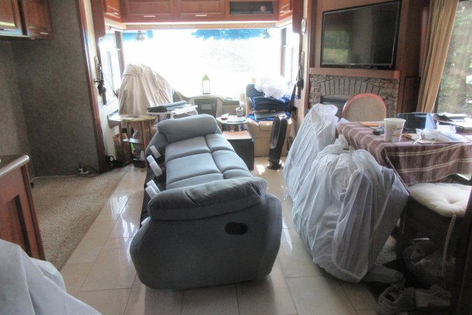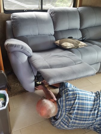 Jan gave me a hand to move the sofa in the MH. Thanks Jan, we really appreciate it.