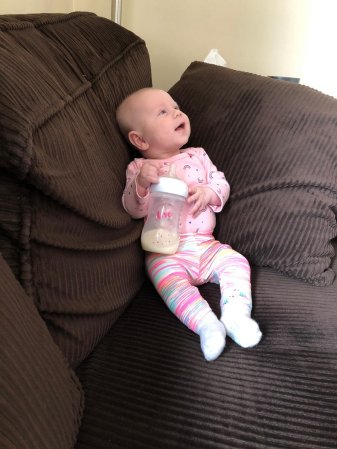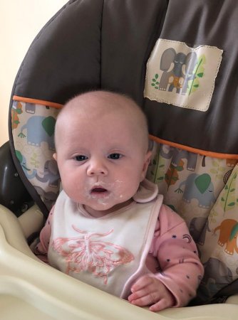 The first one is of her after having a spoon full of rice cereals for the first time.