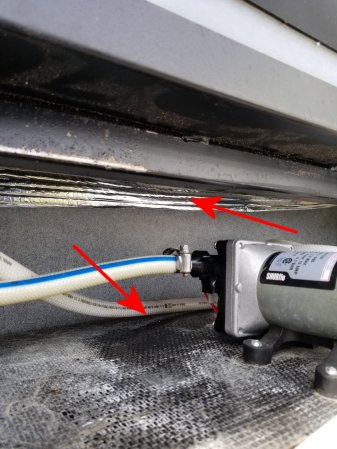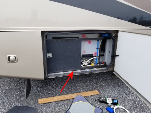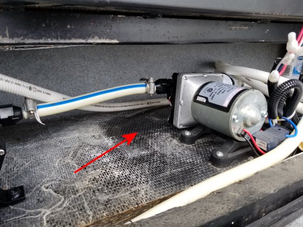 under the tank, just above the water pump. I think about that for a bit