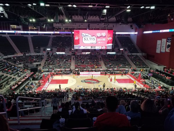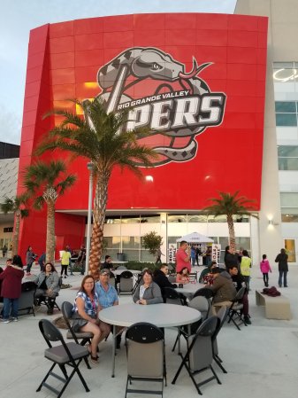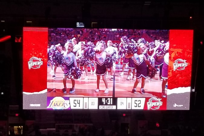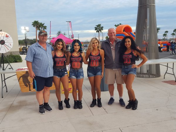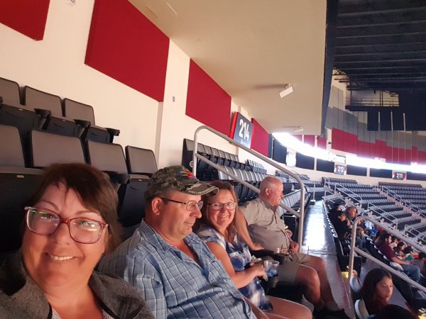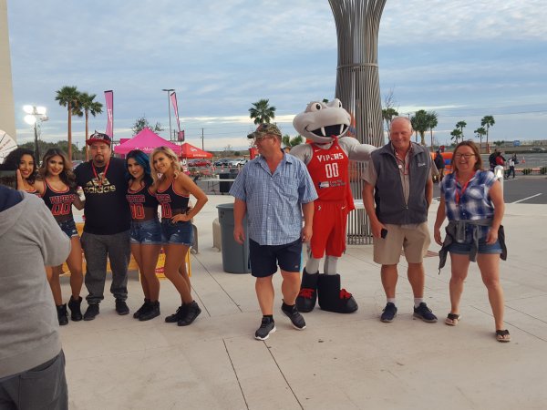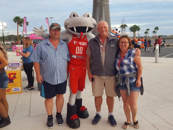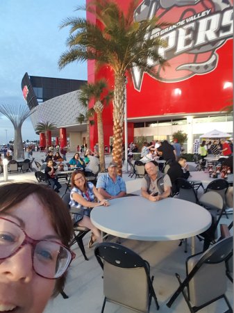 Getting our picture taken with Venom, the Vipers mascot. Patrice seems to be distracted.