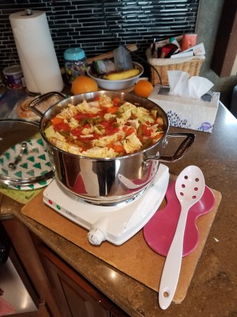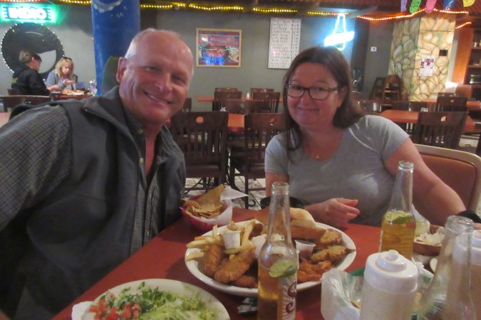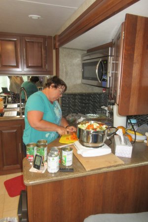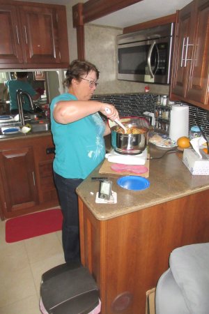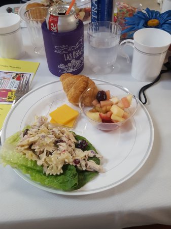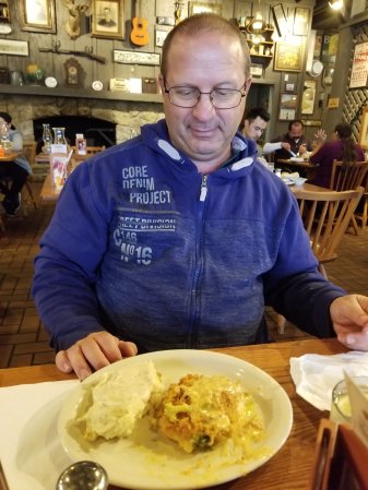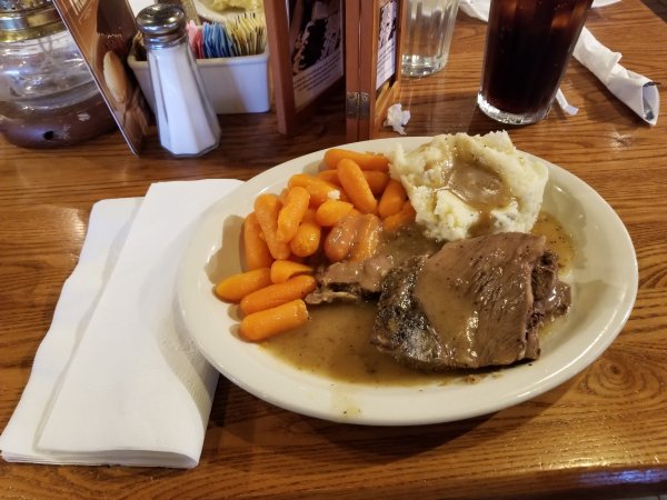 Patrice had the broccoli cheddar chicken with mash potatoes. For me, roast beef with carrots and mash potatoes and gravy.