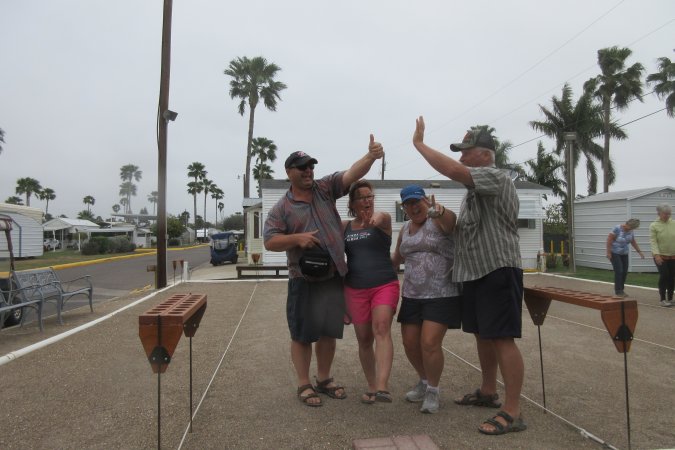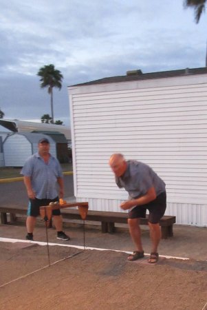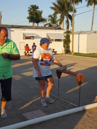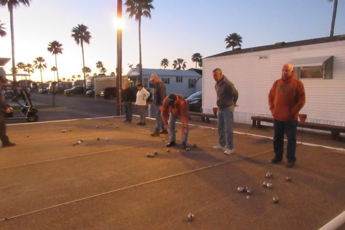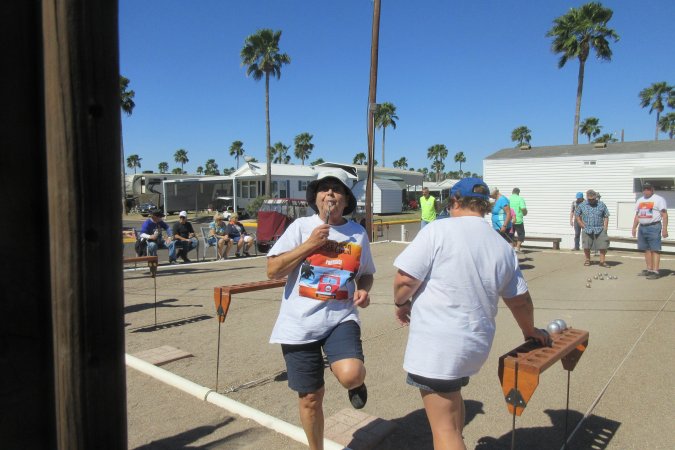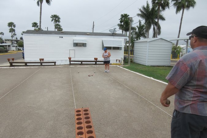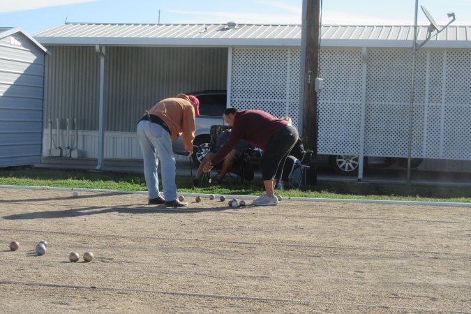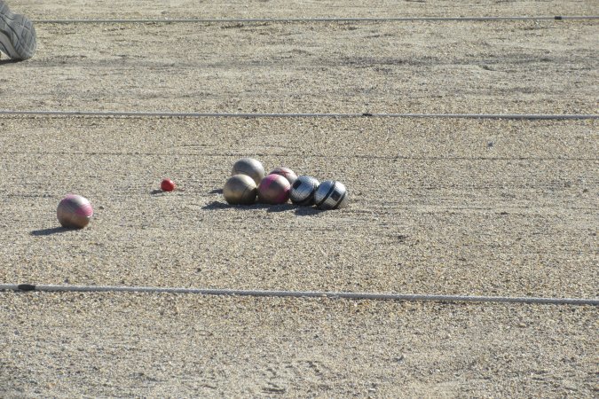 The Park has a petanque tournament today and Michele is part of it. And so am I!