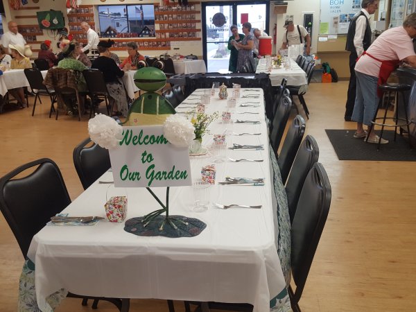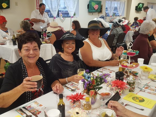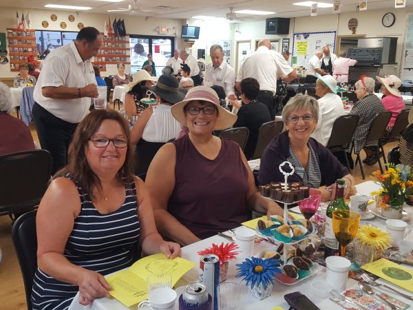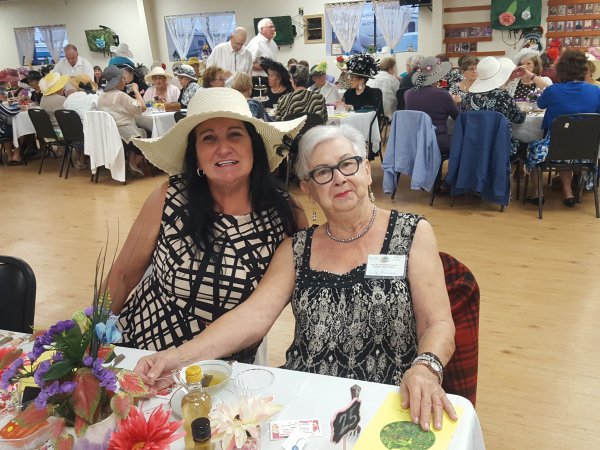 Michele and Manon are at a Tea Party/Fashion Show at lunch time.
