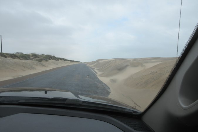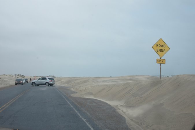 After the kites, we went to the end of SR-100. Sand is coming over the road.