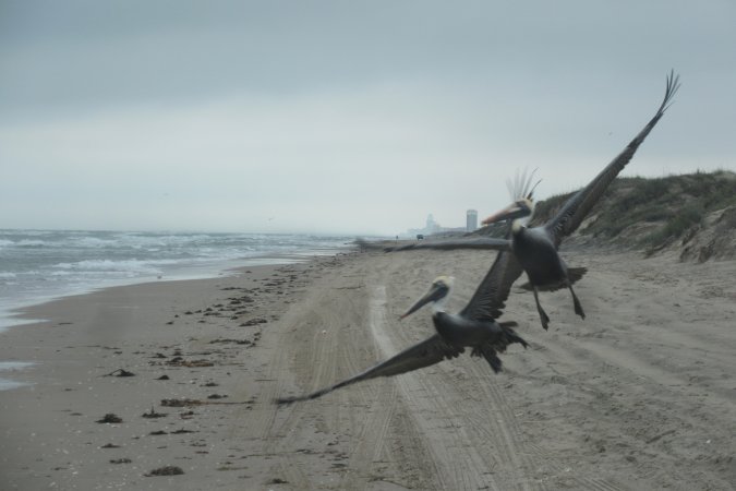 After a while, we drove down the beach with the truck. The pelicans only flew when we got really close.