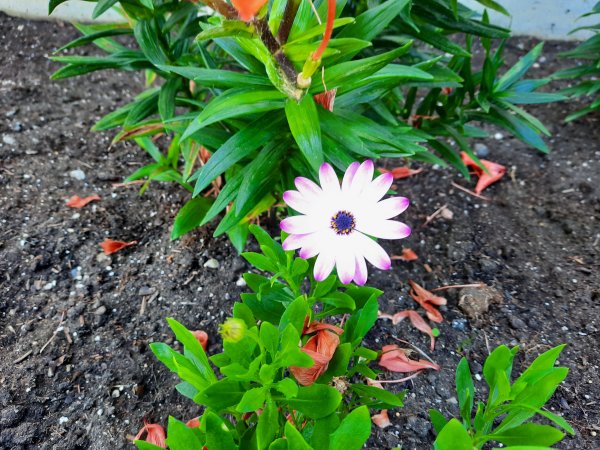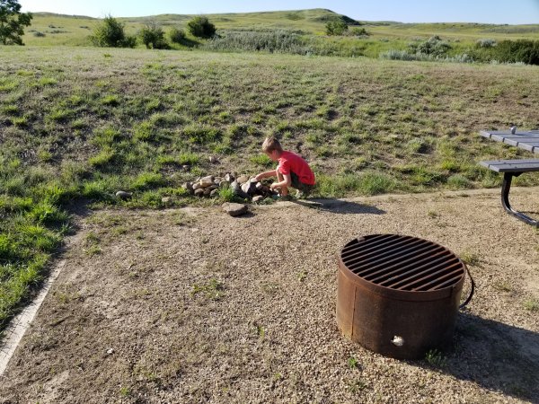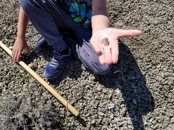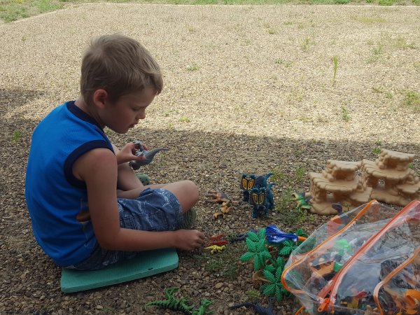 It warmed up in the afternoon. Gabriel is still looking for bugs under the rocks.