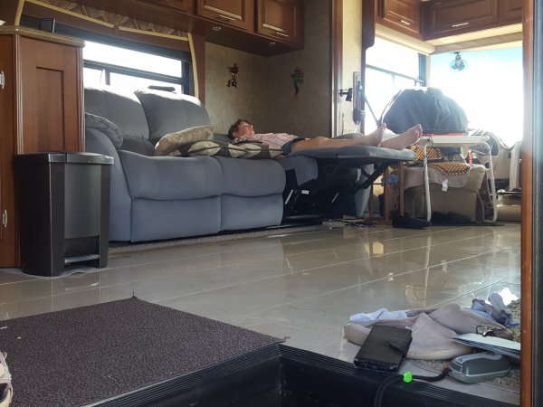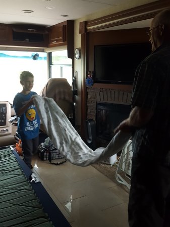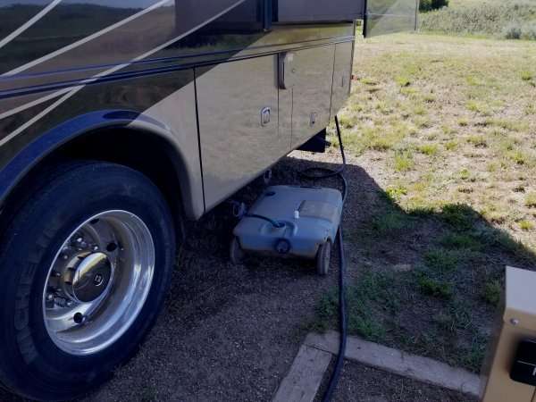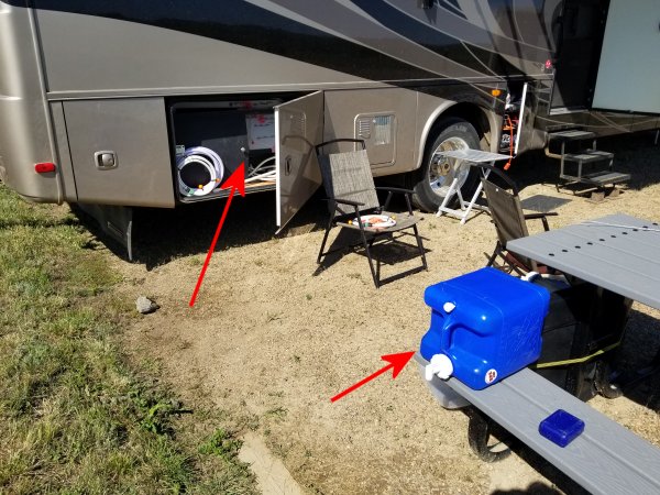 I also filled the freshwater tank. I basically have to transfer water from the blue water jug to the tank in the MH.