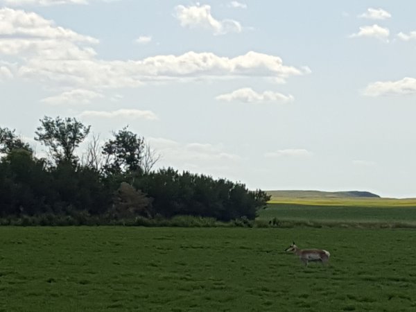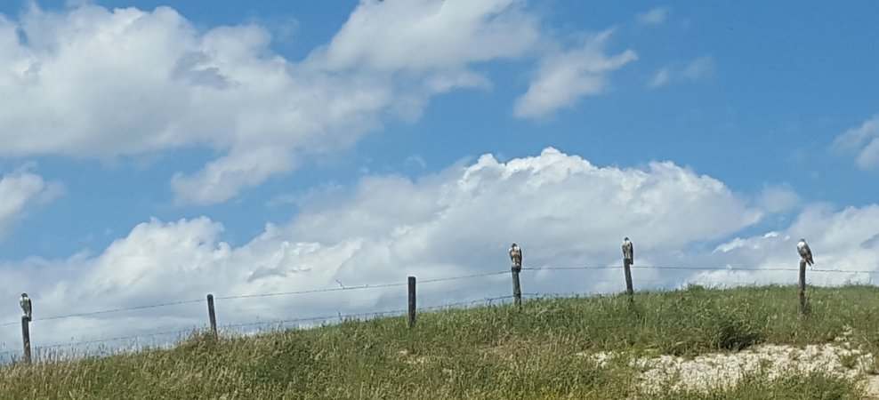 With this hot weather, we decided to go to the town of Rockglen. Rockglen is about 35 km away. On our way, we saw those four Swainson's hawks on fence posts.