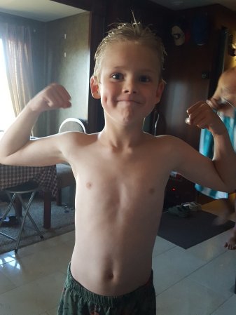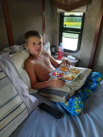 We got back from fishing around 11 pm. Gabriel is worn-out. We only