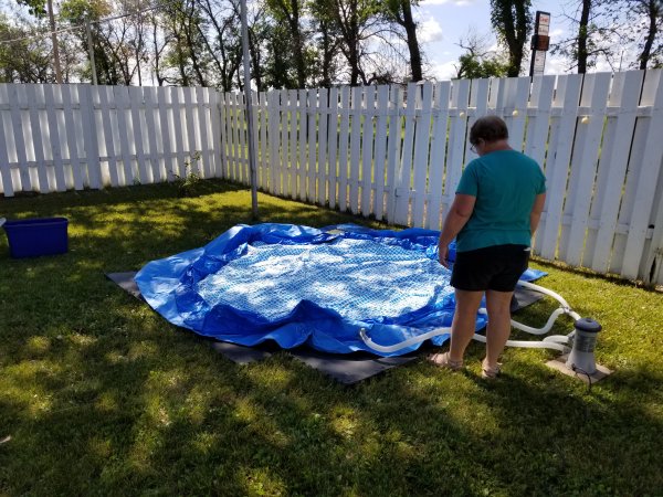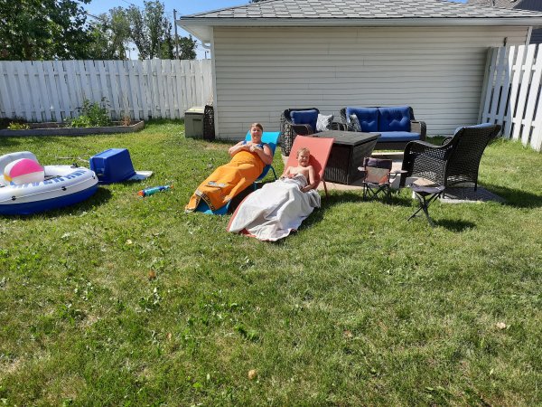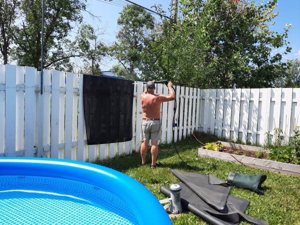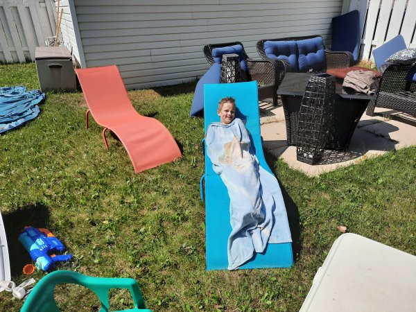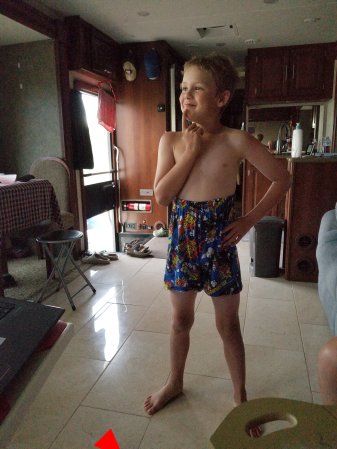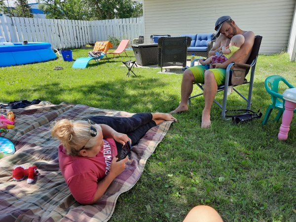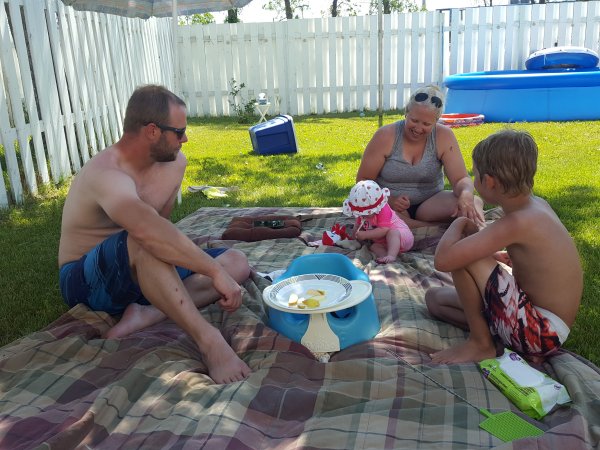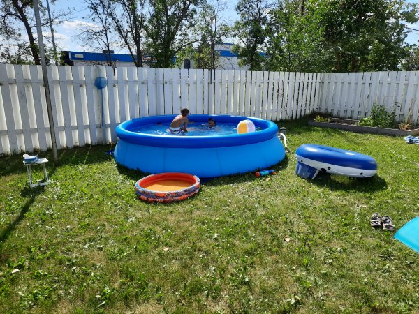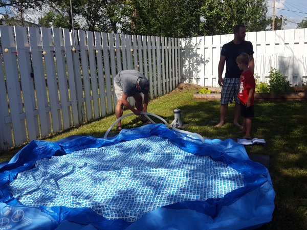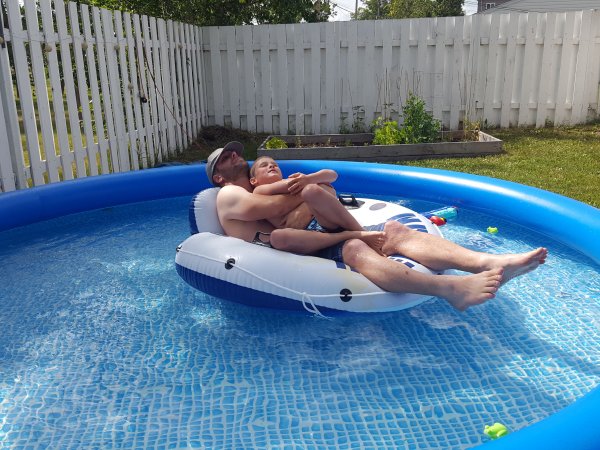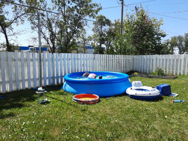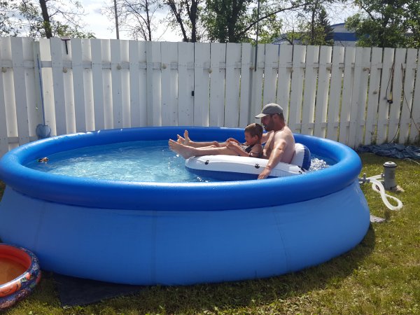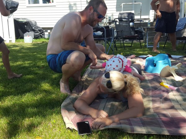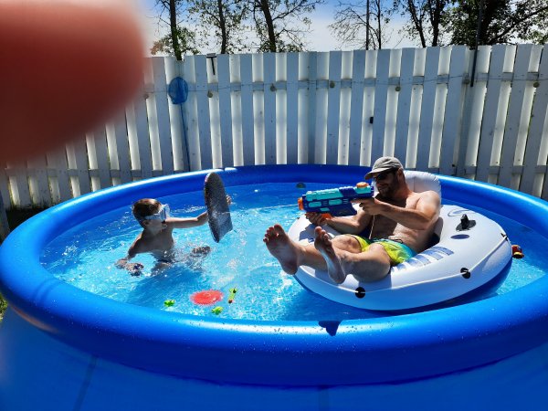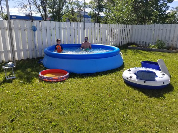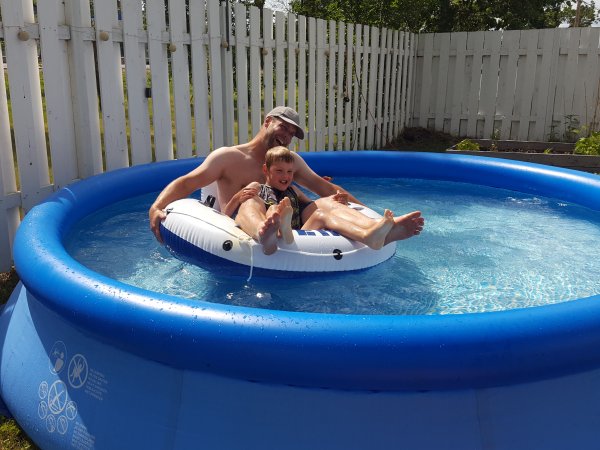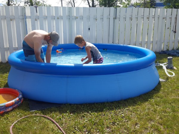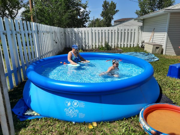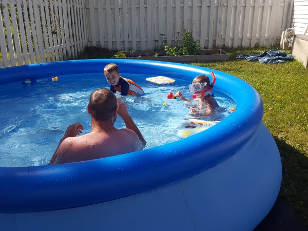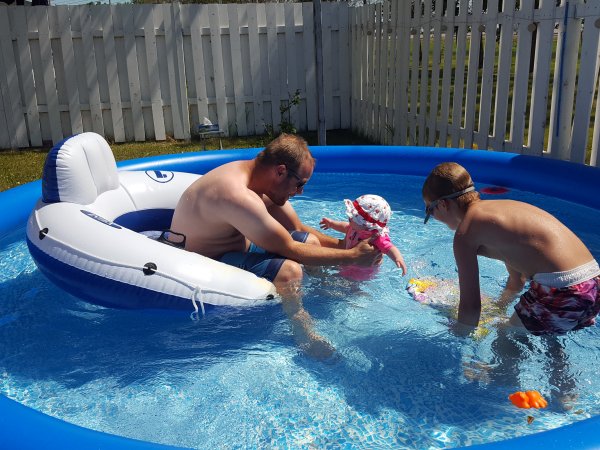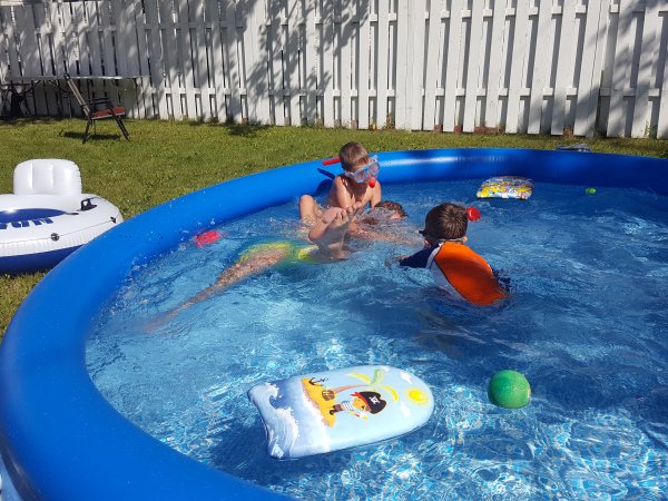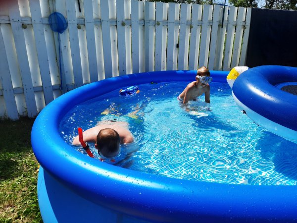 Michele and Gabriel are back in the pool in the afternoon. It is not too hot today.