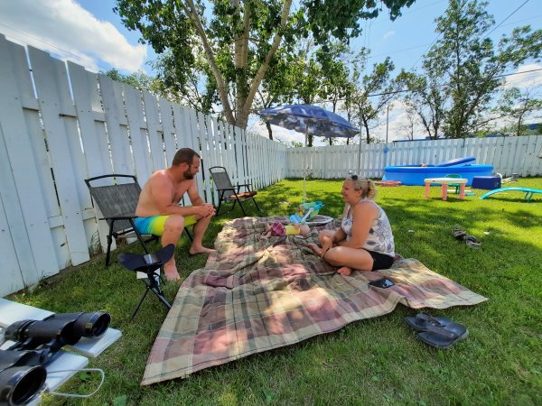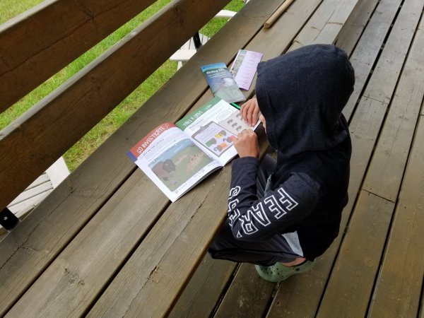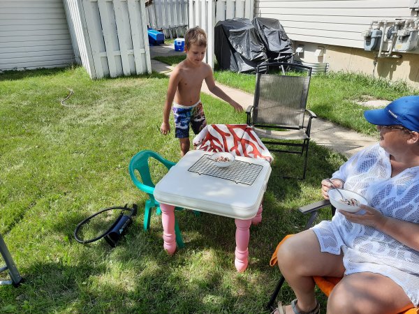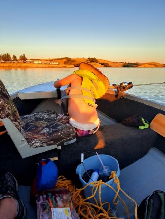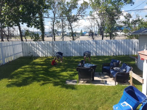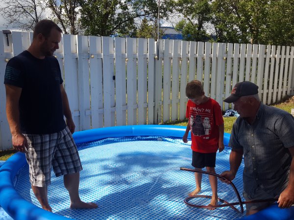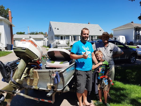 After lunch, Jeremy and Gabriel went to Buffalo Pound Lake to try out the outboard motor. It is still not working very well.