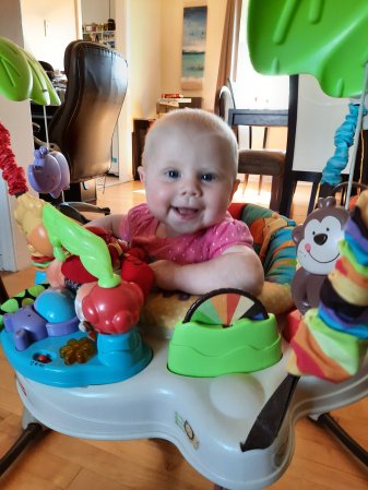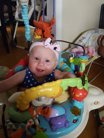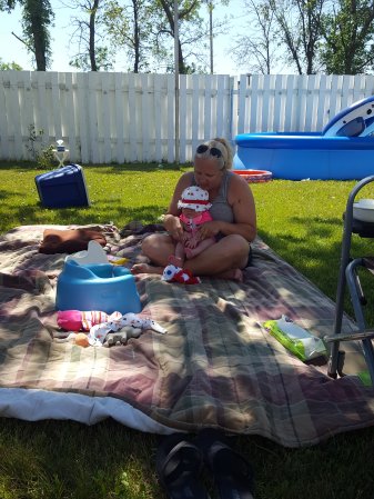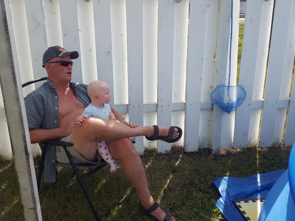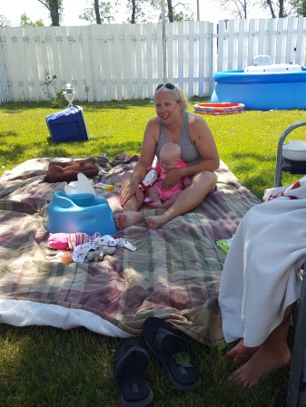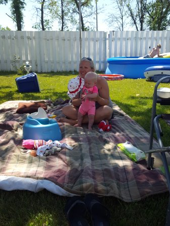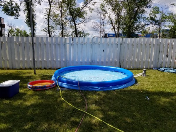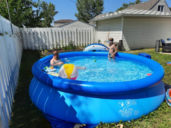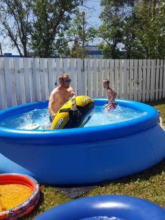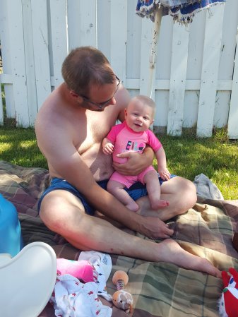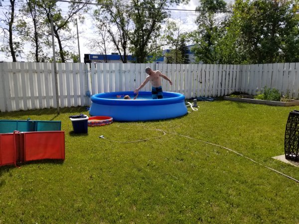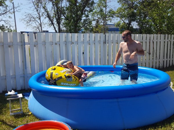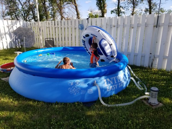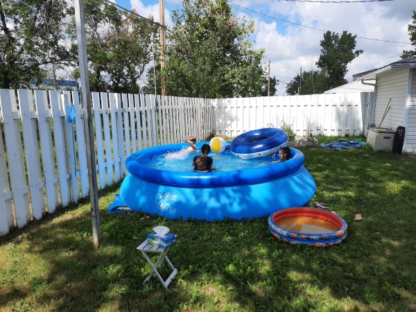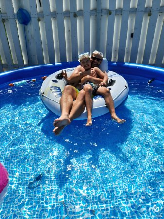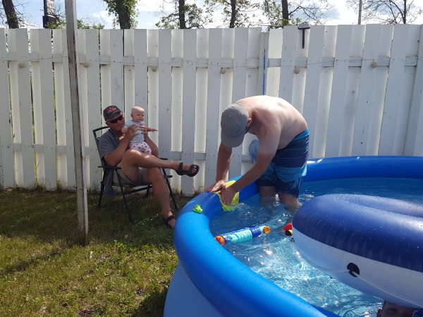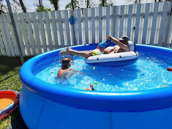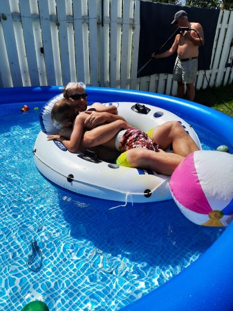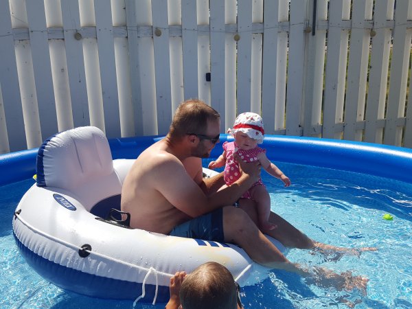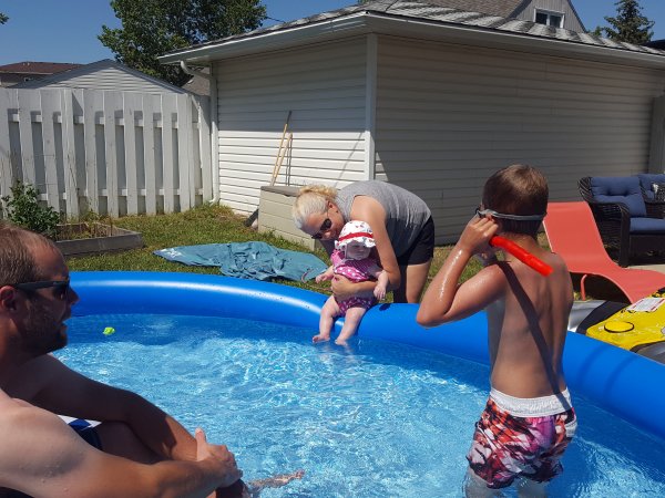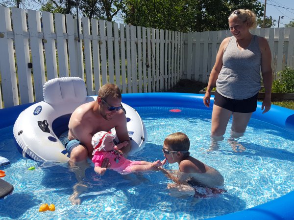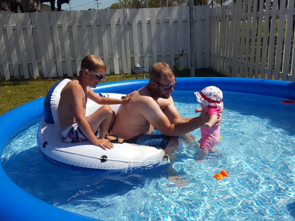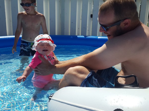 Gabriel is very happy to have other kids to play with in the pool. Anna and Myra are very well-behaved, nice girls.