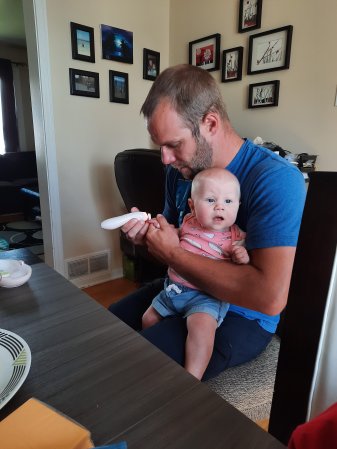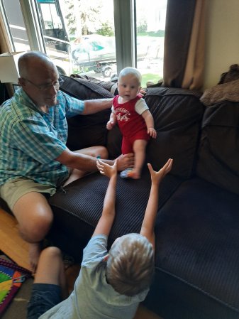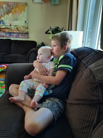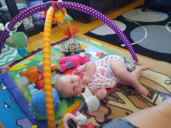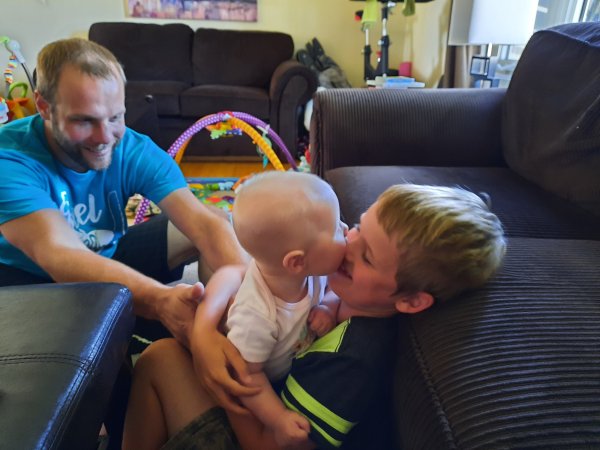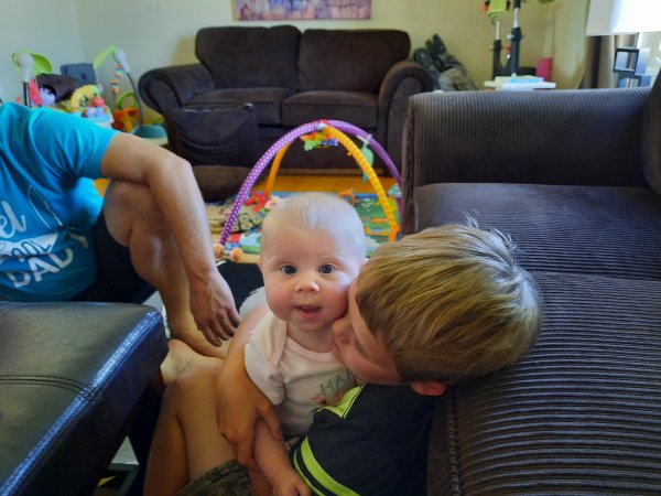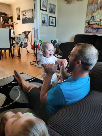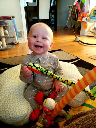 Gabriel plays well with Natasha, until she wants to eat his nose.