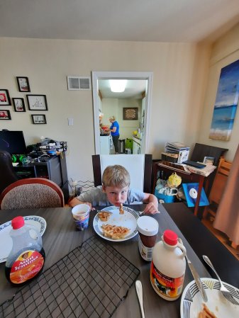 We had lunch, we had really good crepes my mother used to make. Michele does them very well.