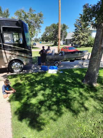 With the new parts installed, we head to Lake Diefenbaker for some fishing. It is next to the small town of Riverhurst.