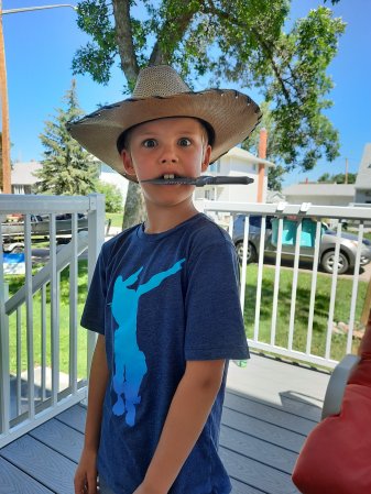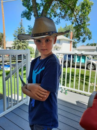 Gabriel loves fishing. He found my old cowboy hat and insists to