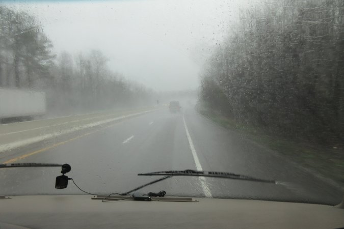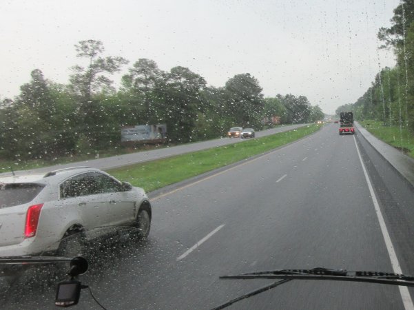 Saturday night at around eleven thirty, we heard lots of noise from a truck engine. It was raining pretty hard.