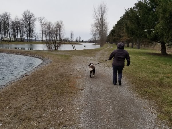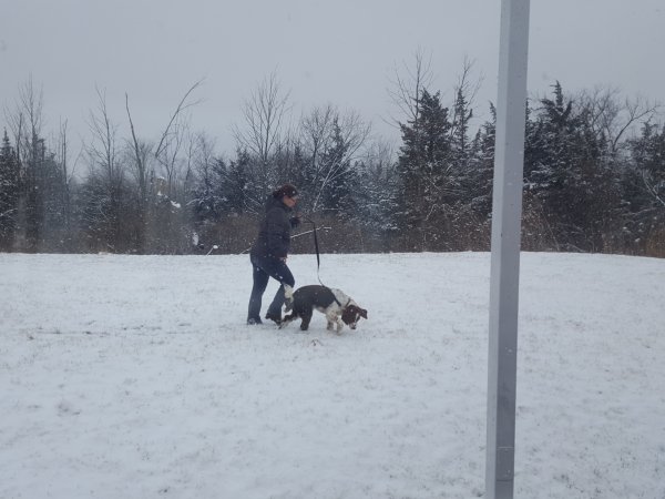 Like many people with dogs, Manon had Flick stretch his legs too.