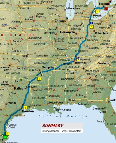 Next is our route between Donna, Texas and Woodstock, Ontario.