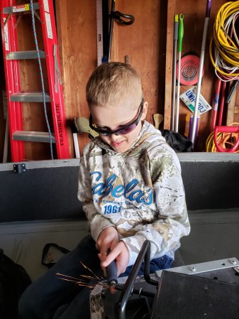 Back in Saskatchewan, Gabriel is helping with the installation of his seat in the boat.