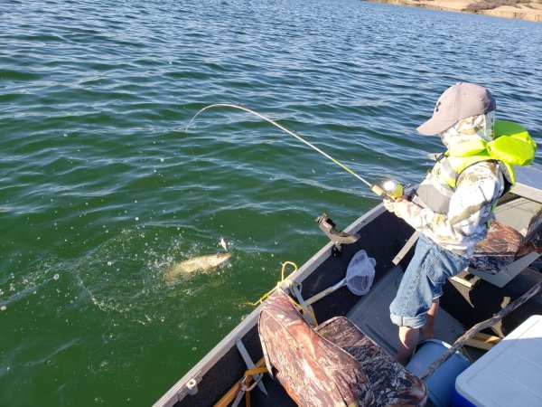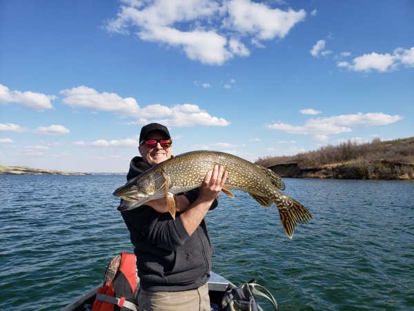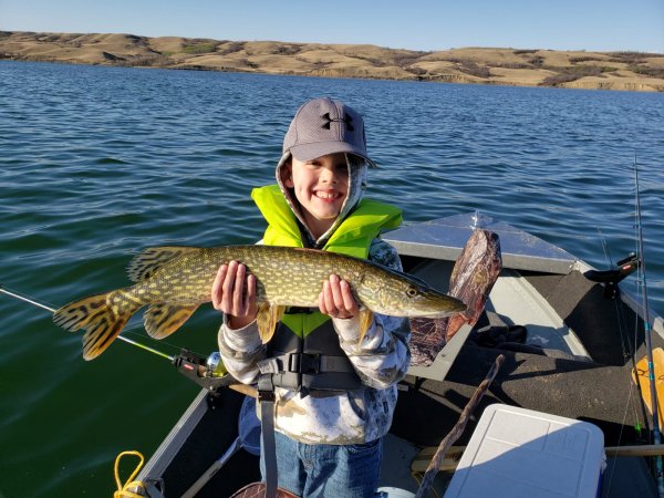 Meanwhile in Saskatchewan, Jeremy went fishing with a friend. His friend caught a nice size pike.