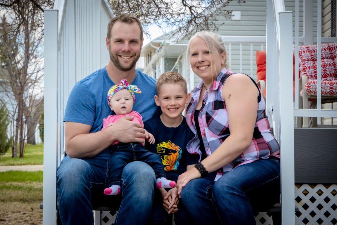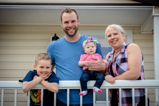 A photograph came to take family porch photos at Jeremy and Kristin's place.