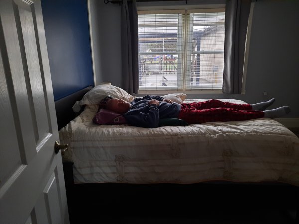Kristin was taking a nap. She had a hard morning because Natasha is