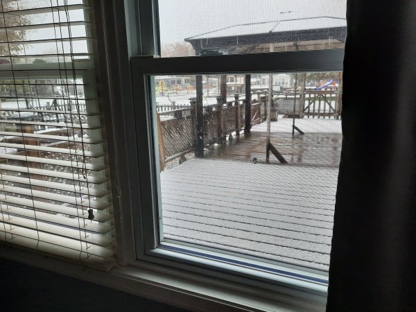 The view from our sunroom. Can you see the fisherman? He has both feet in the water!