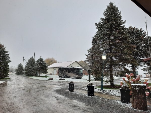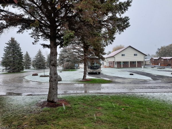 Brrrr! -7° C this morning and a walk in the RV Park.
