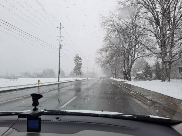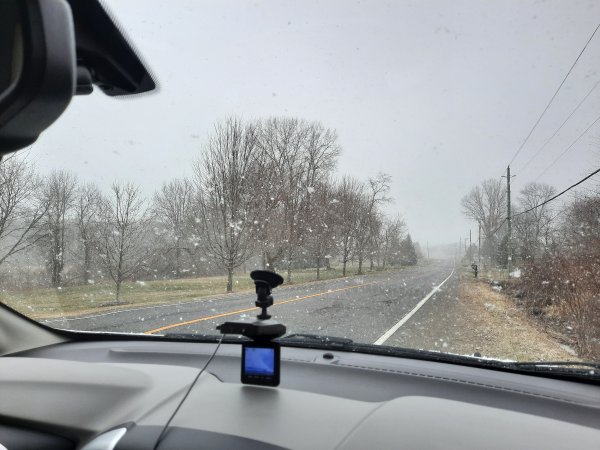 When we left home, it was snowing a little. Halfway to Belleville, it was snowing a lot.