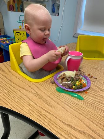 Natasha loves her daycare. It is called "La garderie Pomme d'api".