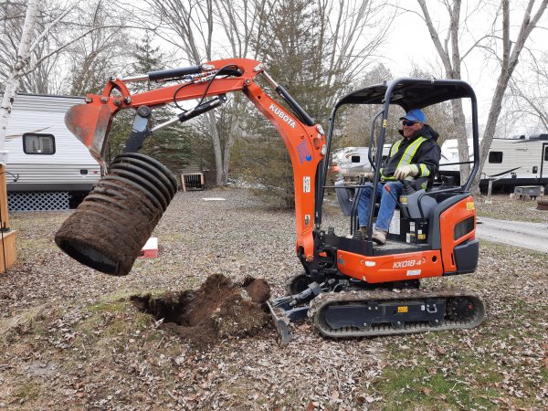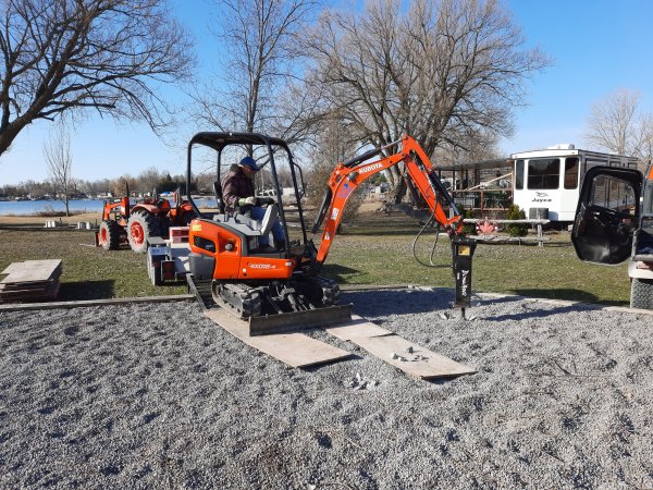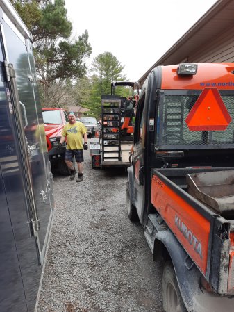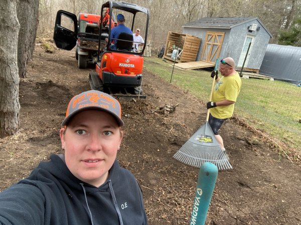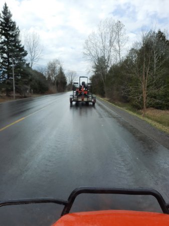 The ladder of success. Jan in the excavator, me in the RTV and Andrew on the rake.