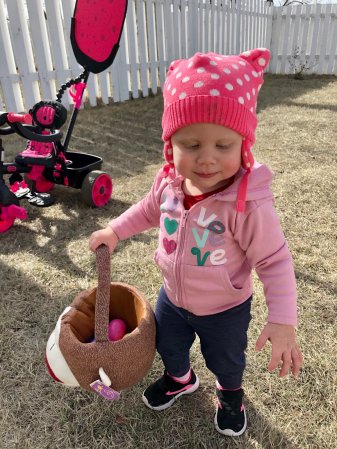 More photos of Natasha. Easter Sunday equals egg hunt.